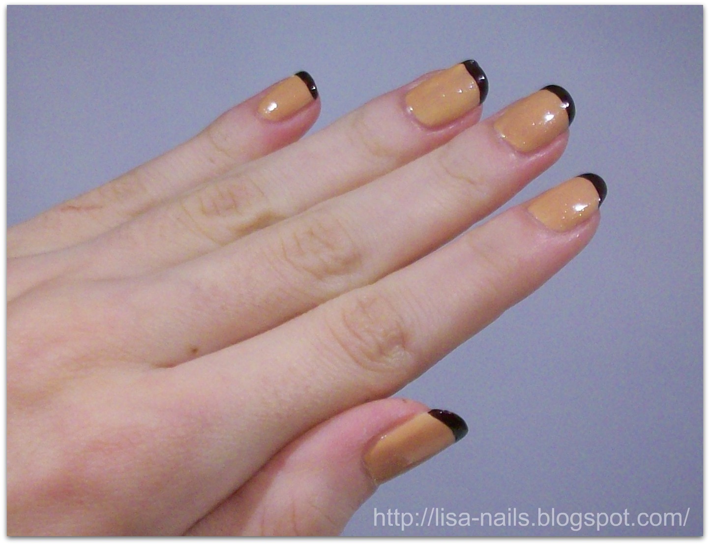 I didn't have a nail polish similar to the one in the pictures so I layered a light yellow polish and a nude one.